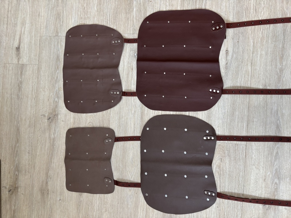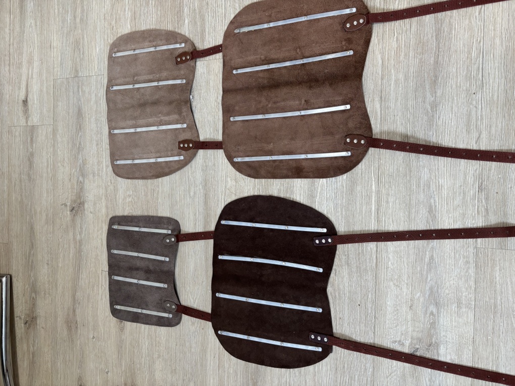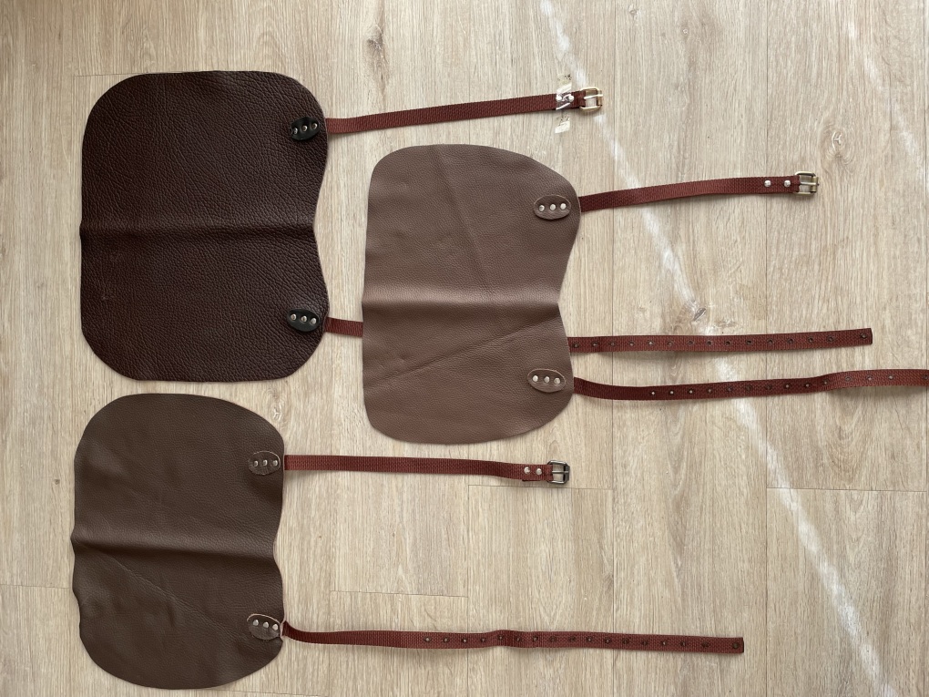 Die hier angebotenen Bockschürzen ist sind auf der Rückseite verstärkt, geklebt und genietet so das sie ihre Form beibehält und das Leder sich nicht so schnell umkrempeln kann.