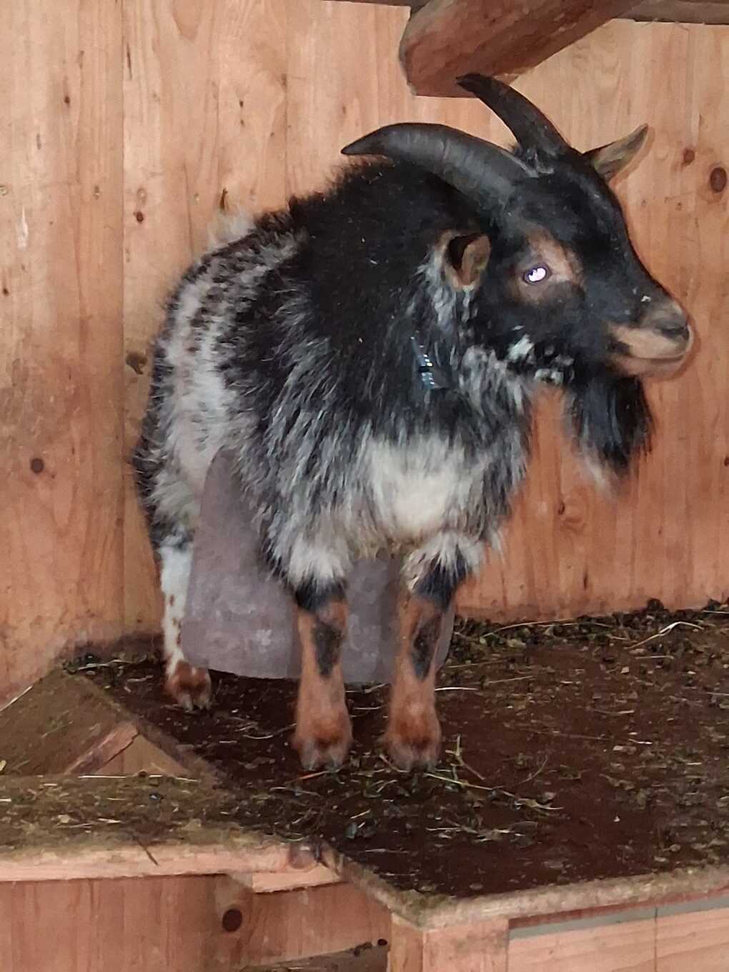Und hier der Minizwergziegenbock Puck mit einer sehr kleinen Bockschürze. Vielen Dank für die schönen Fotos.